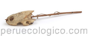 Es un juguete para niños hecho con el cráneo de una tortuga pequeña y una maderita larga y delgada, semejando un volero.