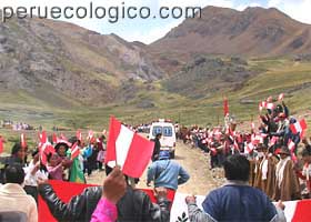 en medio de los aplausos de los pobladores de Huachocolpa. |