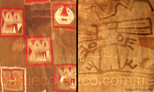 En textilería, los Chachapoya destacaron por sus tapices, bordados y telas pintadas, como las de la imagen. Usaron principalmente colores marrones, rojos, amarillos y blancos, entre otros de origen vegetal.