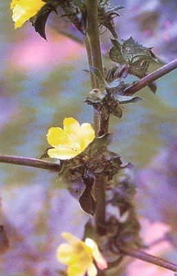 de alto que presenta flores de color amarillo. Crece en costa y selva