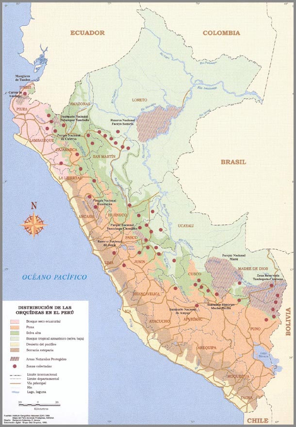 MAPA DE DISTRIBUCIÓN DE ORQUÍDEAS EN EL PERÚ